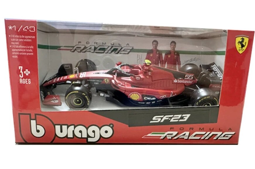 Металлическая коллекционная модель "Bburago" болида "Феррари" Карлос Сайнс. (Carlos Sains/ Ferrari SF-23 №55) Формула-1 сезон 2023. Масштаб 1:43