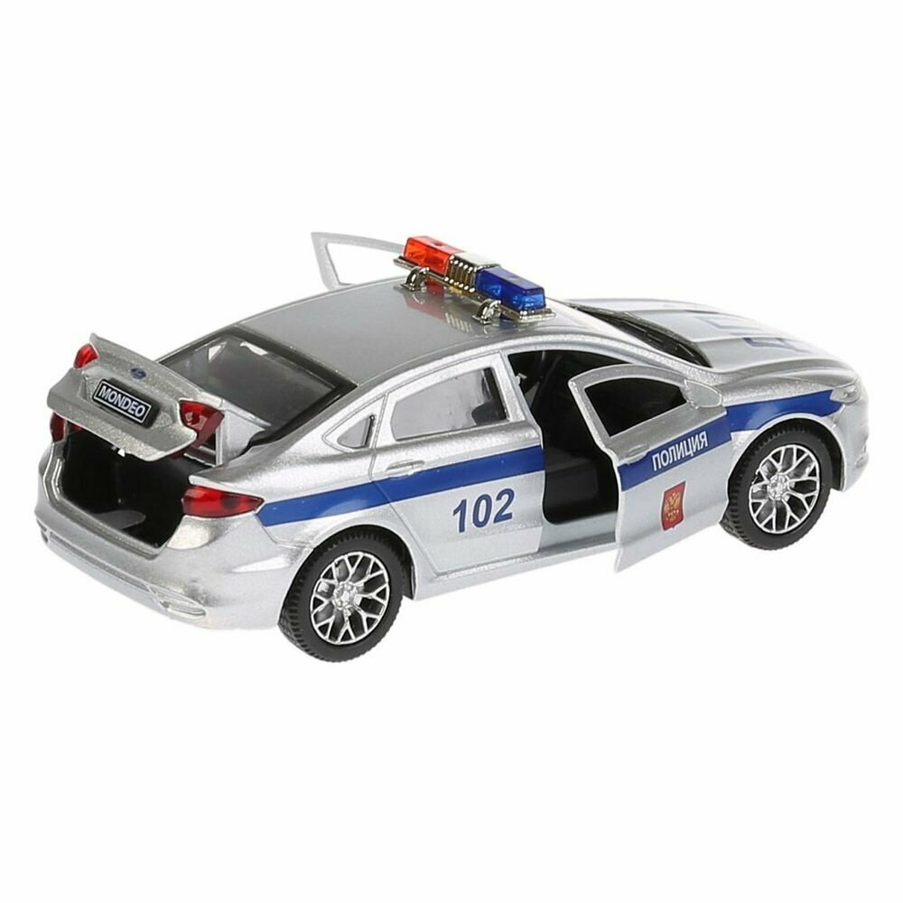 Машинка детская Ford Mondeo Полиция 12 см, Технопарк, серебристая, открываются двери и багажник, металлический корпус