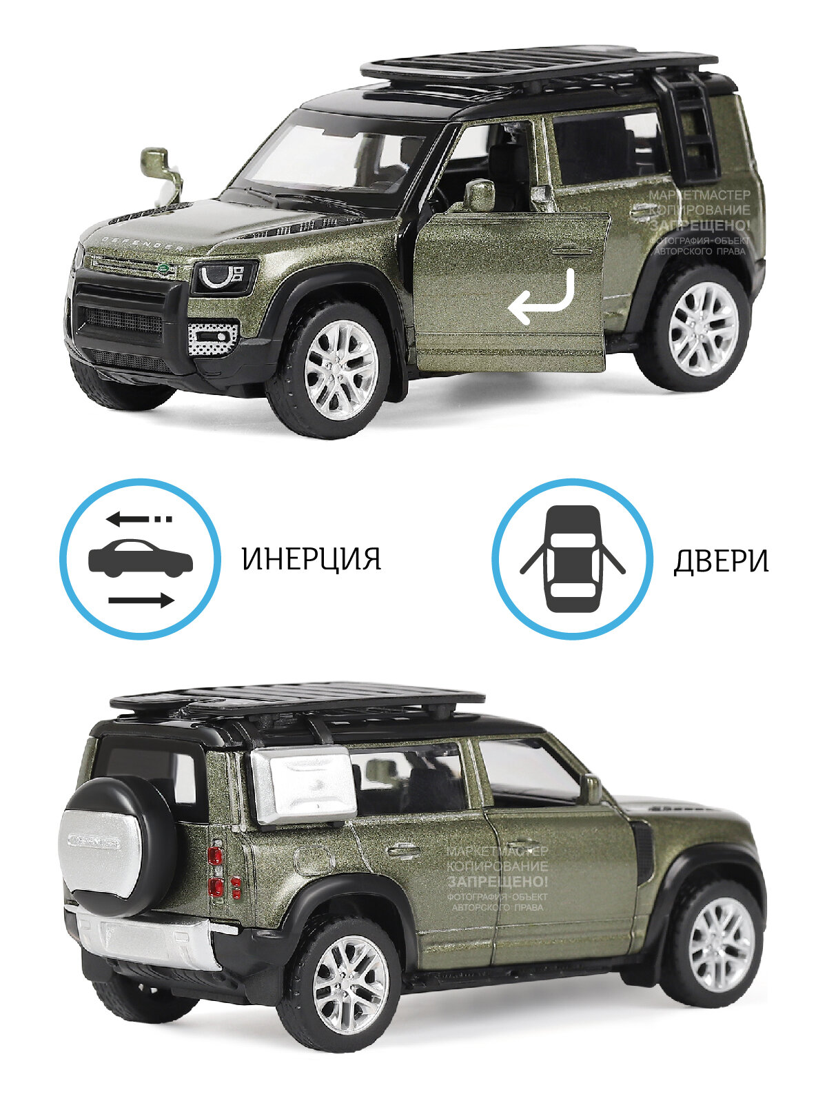 Машинка металлическая инерционная ТМ Автопанорама, Land Rover Defender 110, М1:43, оливковый, JB1251496 информация: