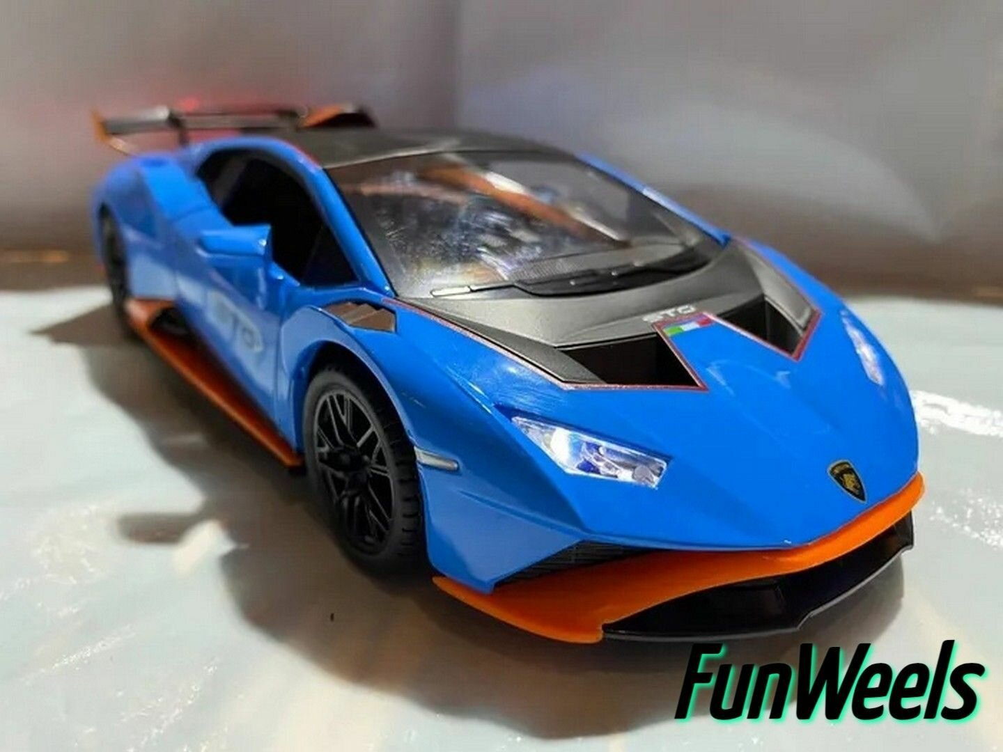Отзывы на Металлическая инерционная машинка "Lamborghini Huracan STO" масштаб 1:24, длина 21 см голубая