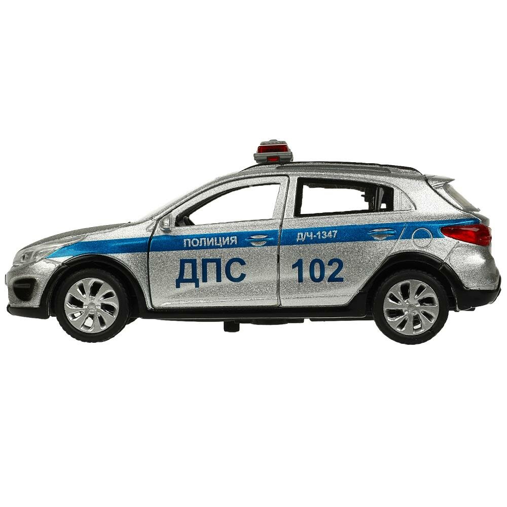 10 цен на Машина металл свет-звук KIA RIO X полиция 12 см, двер, баг, инерция, серебристый