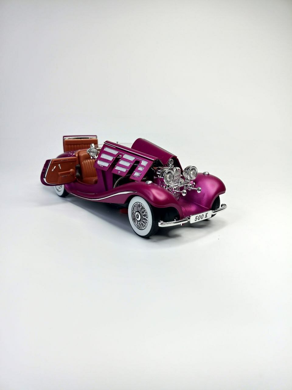10 цен на Коллекционная машинка игрушка Мерседес 500К ретро-модель масштаб 1:24 красная с дымом