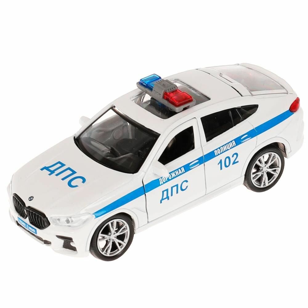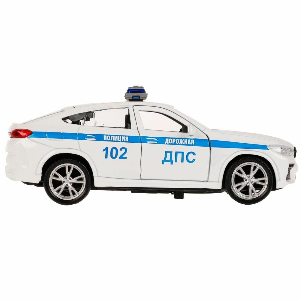 Машинка Технопарк модель BMW X6 Полиция ДПС 12 см, белая, откр. двери.
