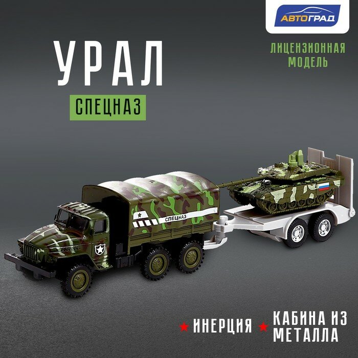 10 цен на Грузовик металлический урал Армия с прицепом, инерция, масштаб 1:43, цвет зелёный