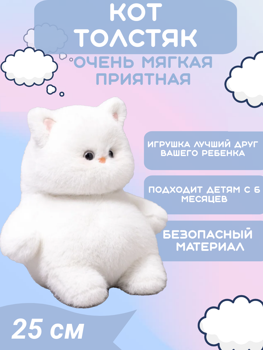 Мягкая игрушка Кот толстяк белый 25см информация: