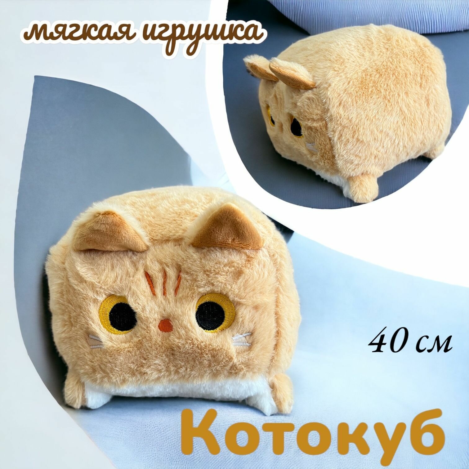 Мягкая игрушка-подушка глазастый квадратный Котокуб 40см, цвет рыжий информация:
