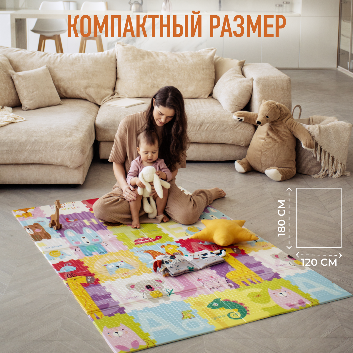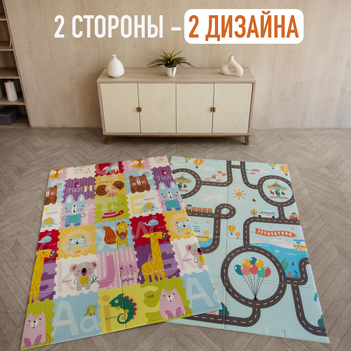 Отзывы на Детский коврик для ползания складной двухсторонний игровой термоковрик Mamagoods 120х180 Город и зверята