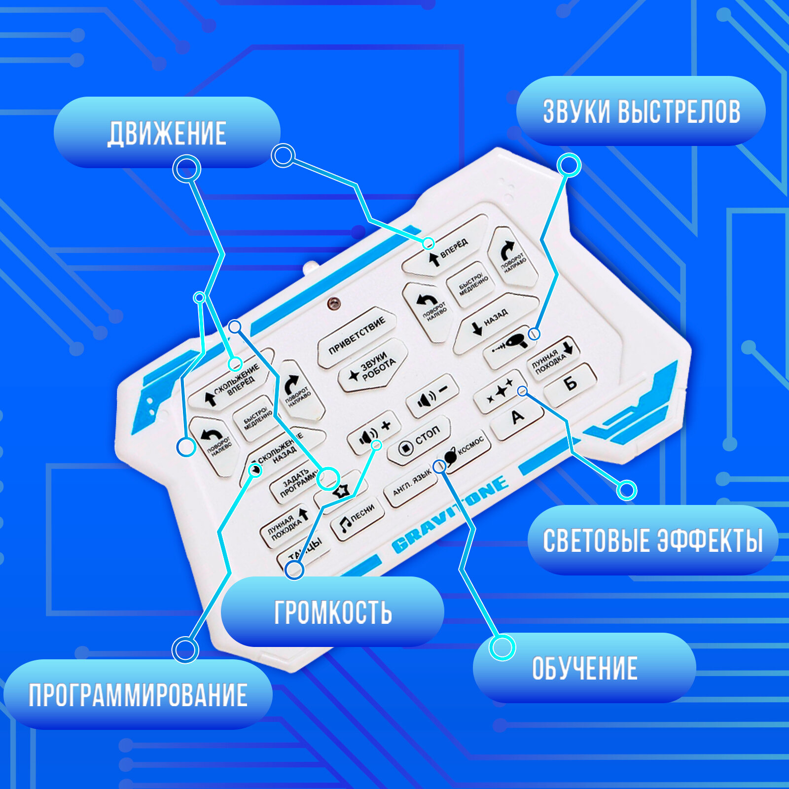| Особенности | говорит / поет / программируемая игрушка / пульт ДУ в комплекте / радиоуправление / ходит/ездит |