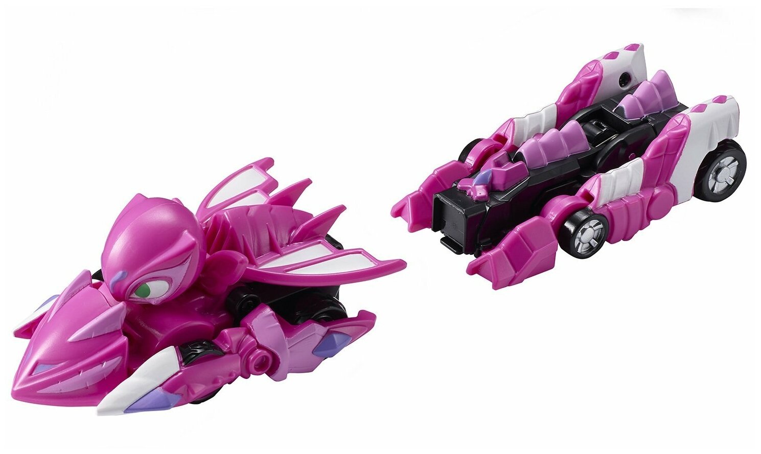 | Дополнительная информация | трансформация робота-бабочки происходит путем стыковки двух гоночных машинок с помощью пускового механизма – меча; один из автомобилей с находящимся в нем монстриком Пикси является верхней частью трансформера; автоматическое соединение происходит за счет магнитов, встроенных в каждый элемент; робот легко разбирается на отдельные машинки в обратном порядке; автомобильчик с монстриком умеет быстро ездить, другой – выполняет резкие развороты |