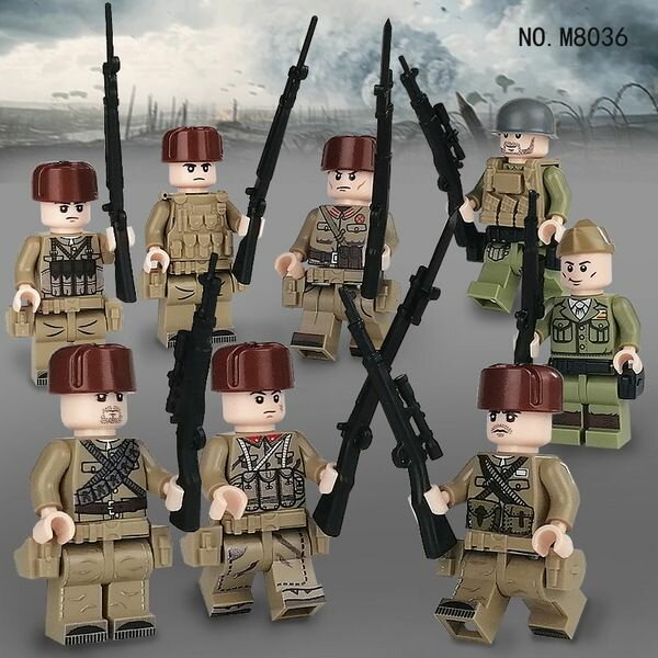 10 цен на Военные лего фигурки 8 шт. + оружие и аксессуары / игровой набор Великая Отечественная Война / минифигурки солдаты