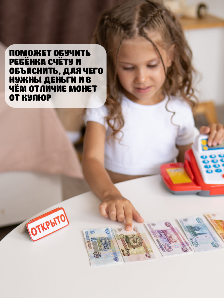 Обучающая касса-калькулятор Учимся и играем, игрушечная, с аксессуарами, световые и звуковые эффекты информация: