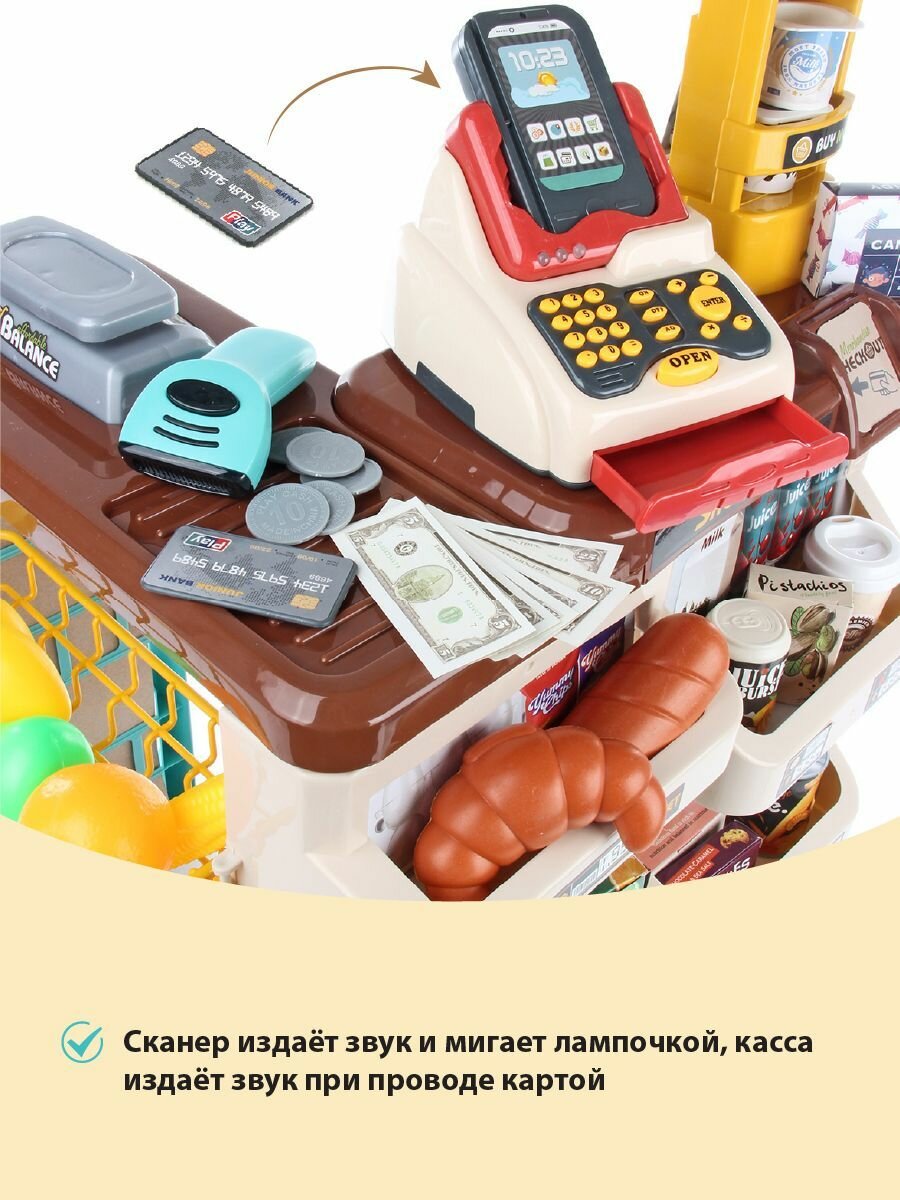 Детский игровой набор Супермаркет, Veld Co / Игрушечная касса со светом и звуком / Кассовый прилавок и тележка с продуктами для детей информация: