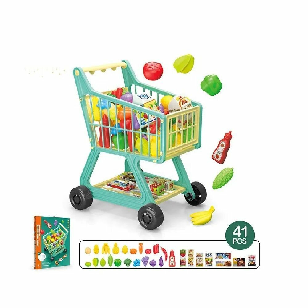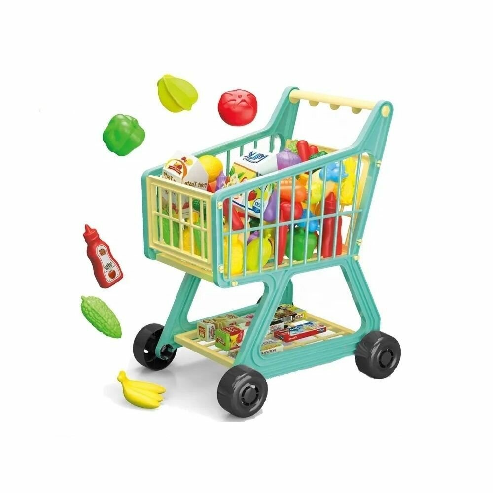 Игрушка детская Тележка на колесах для супермаркета с игрушечными продуктами