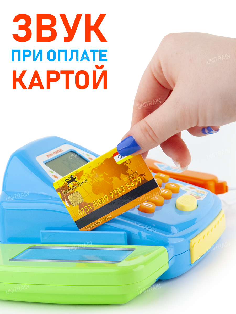 | В комплекте | деньги, калькулятор, кассовый аппарат, продукты, сканер, тележка |