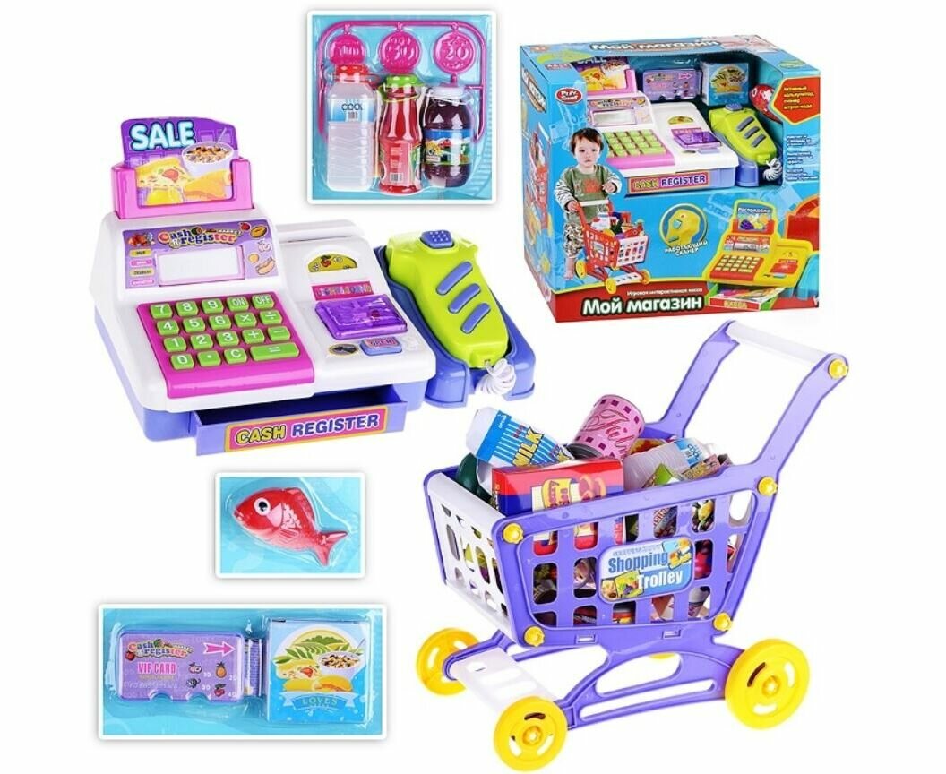 Детский кассовый аппарат Play Smart "Мой магазин" с тележкой 7562B информация: