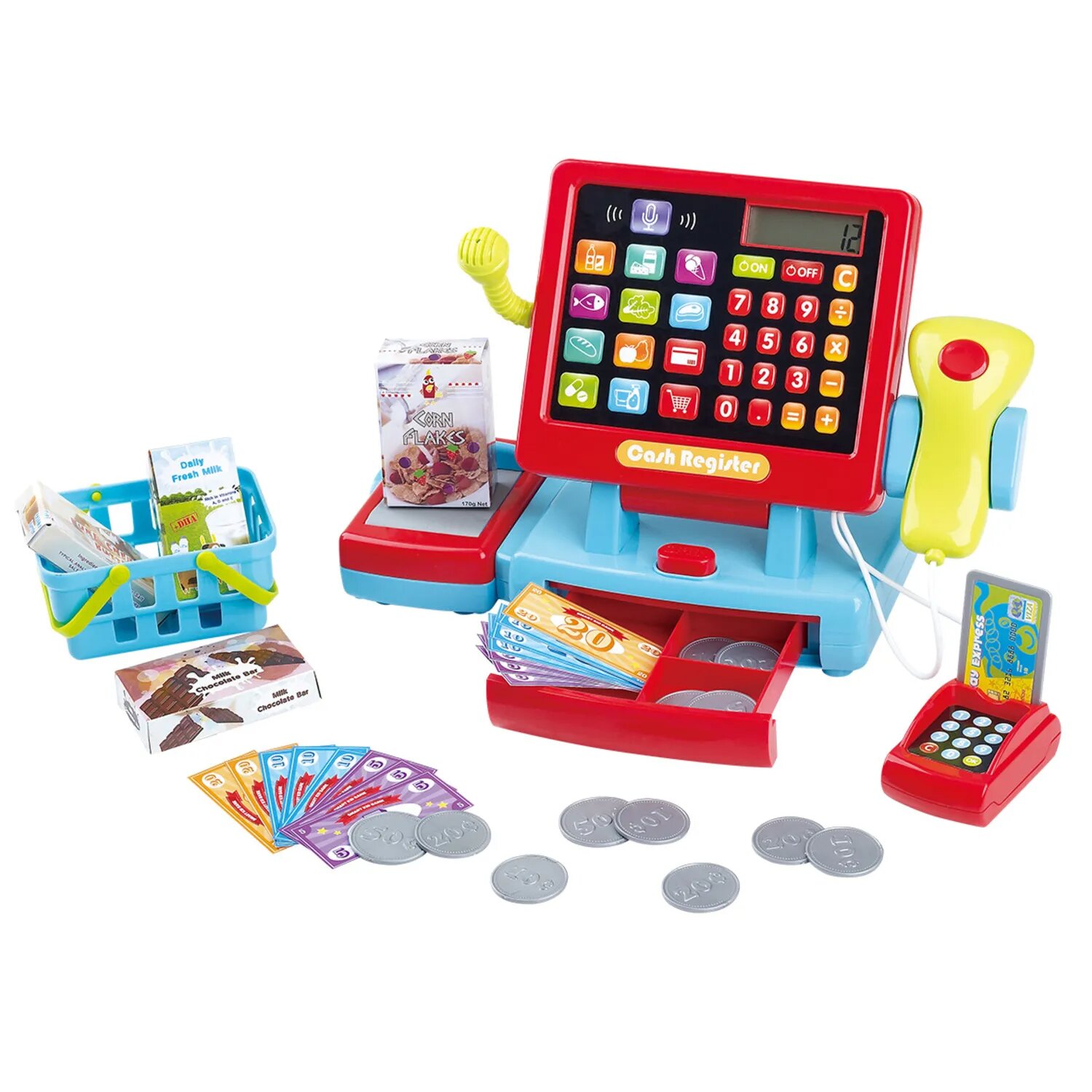 | Комплектация | кассовый аппарат со сканером и микрофоном / конвейерная лента / корзинка / набор продуктов / деньги |