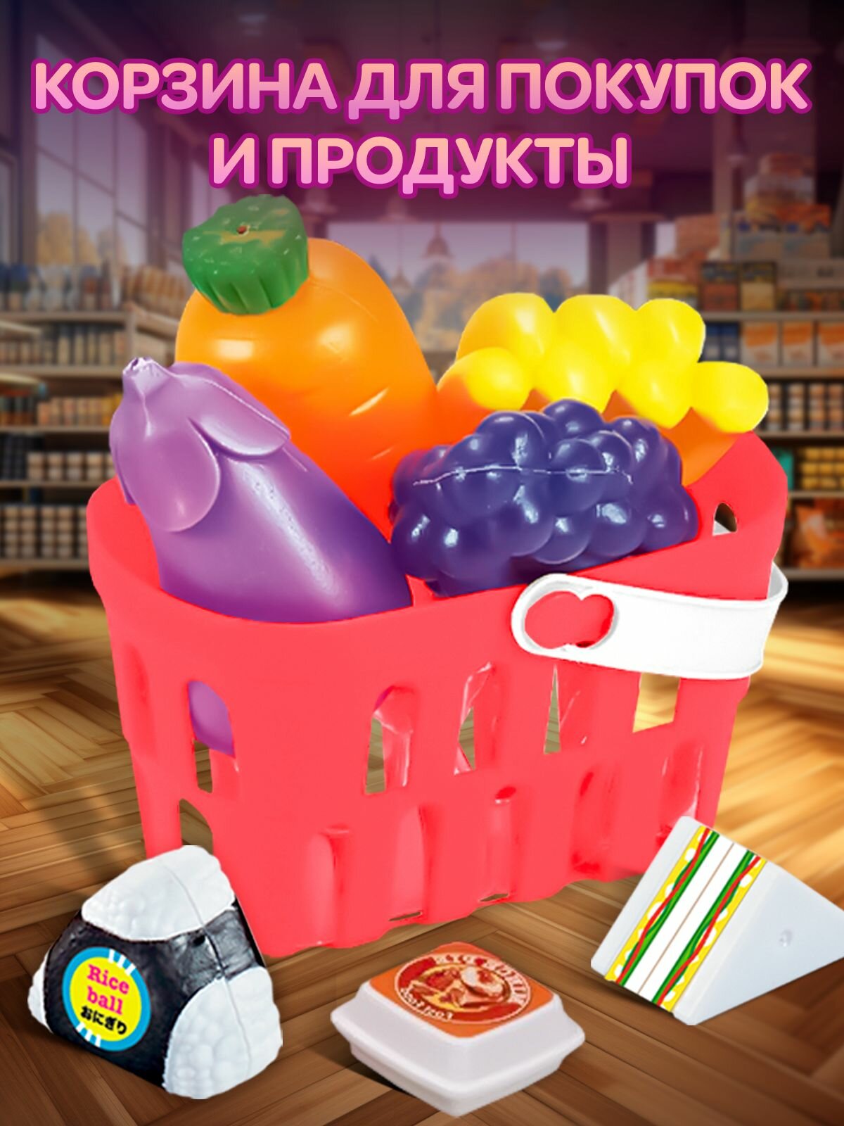 | Комплектация | Детская игрушечная касса; деньги игровые; корзинка с продуктами |