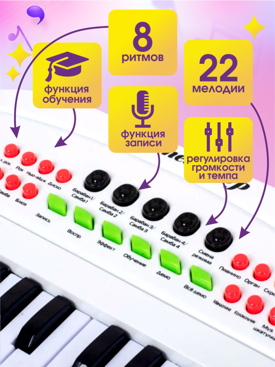 10 цен на Синтезатор, 32 клавиши, в комплекте микрофон (HS3230B)
