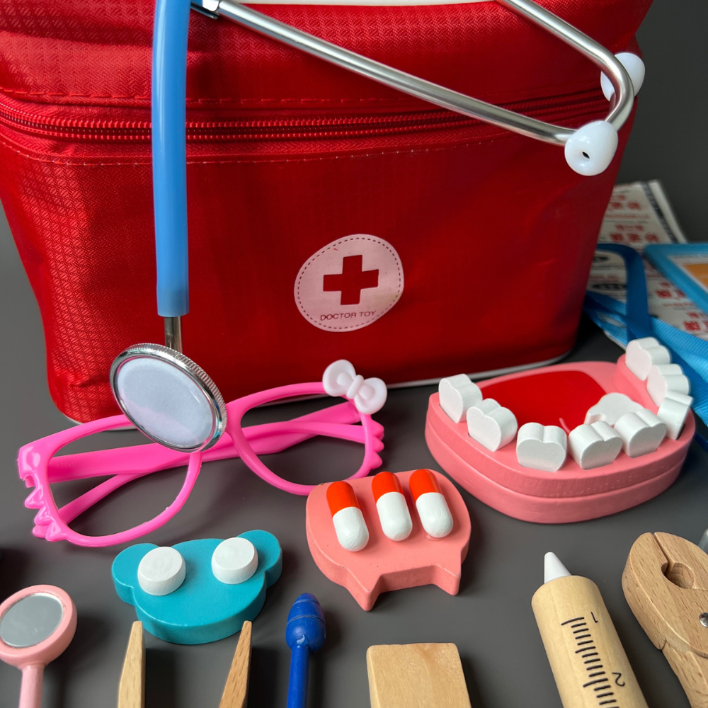 Сюжетно-ролевой деревянный набор доктора в сумке с мягкой игрушкой "Врач скорой" информация: