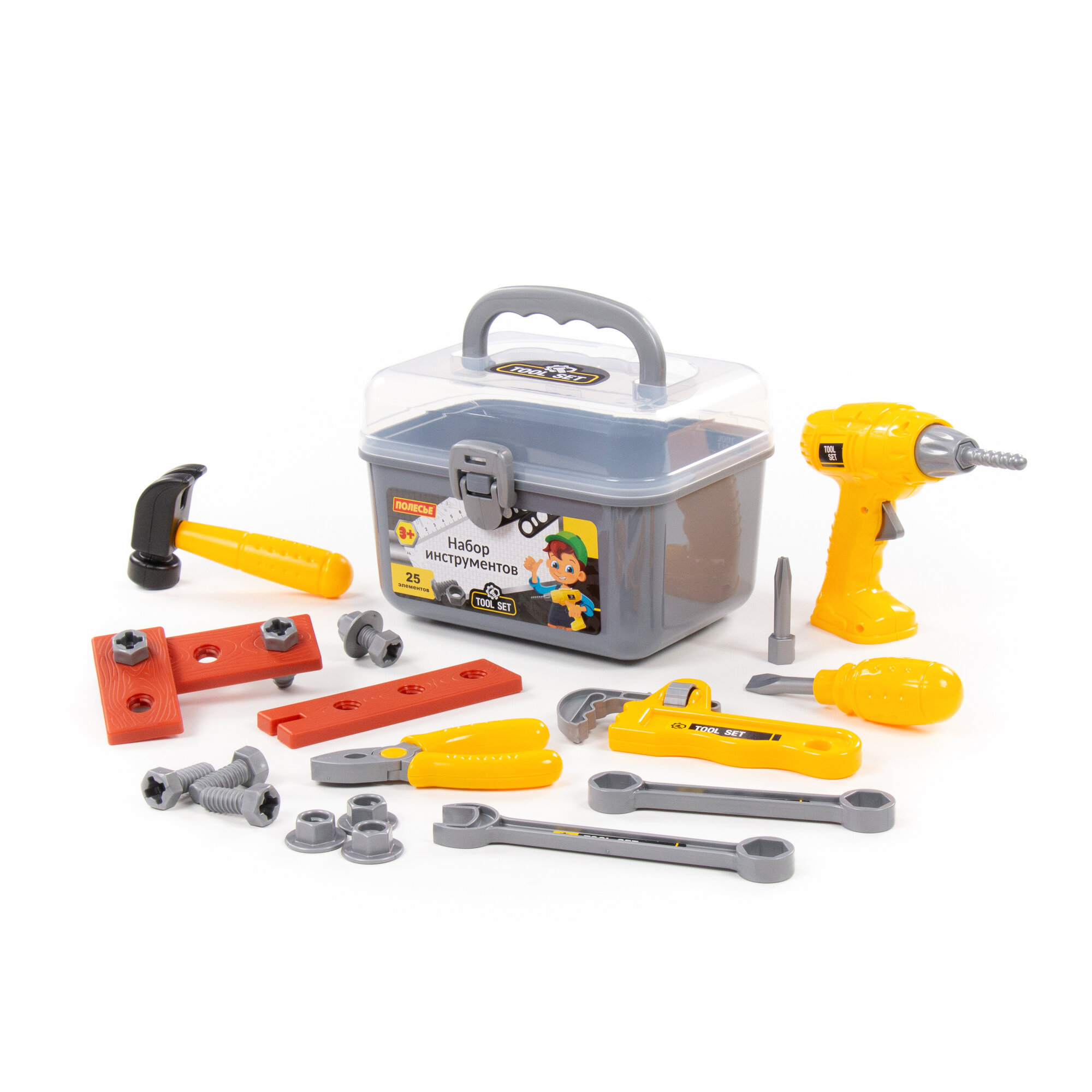 Отзывы на Набор инструментов игрушечных в чемоданчике сером, 25 элементов