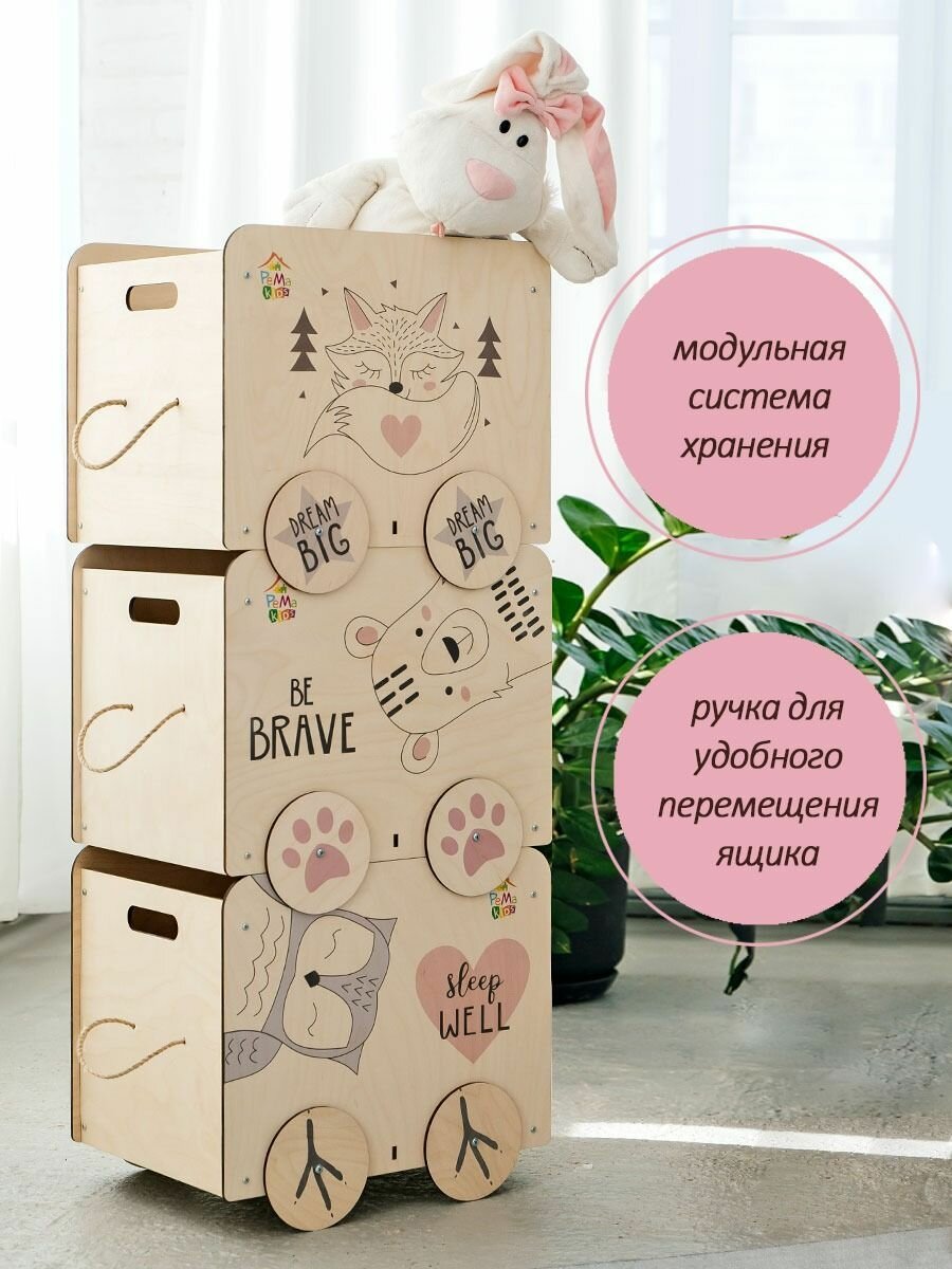 Ящик для хранения игрушек деревянный на колесах Лисичка информация: