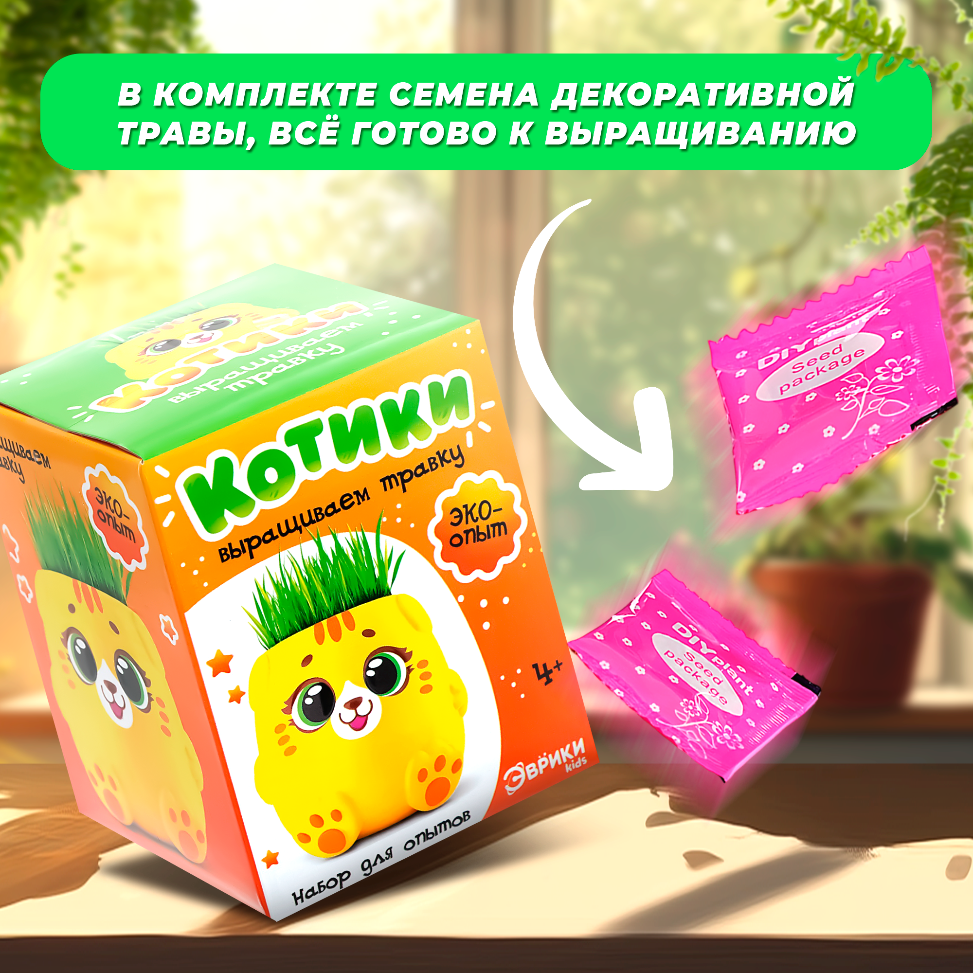 Набор для опытов «Котики. Выращиваем травку», жёлтый горшочек информация:
