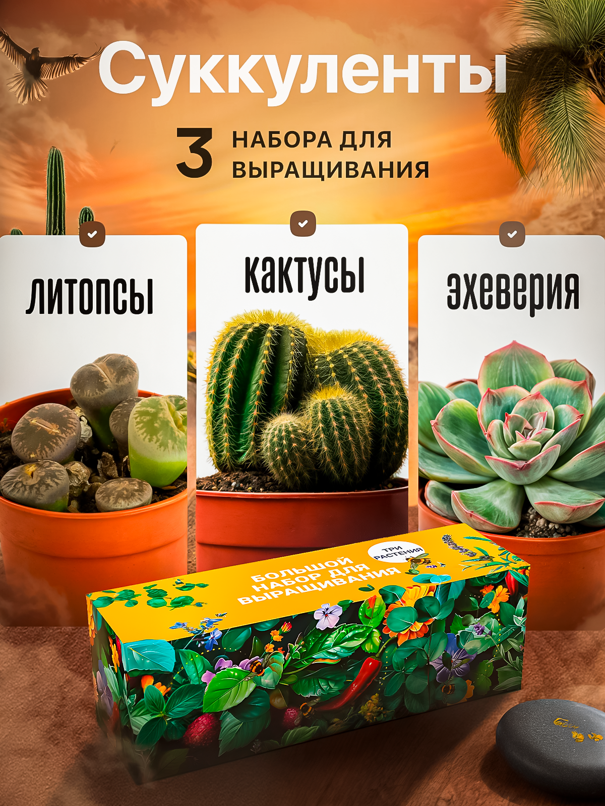 Набор для выращивания растений Суккуленты Кактусы Литопсы Эхеверия информация: