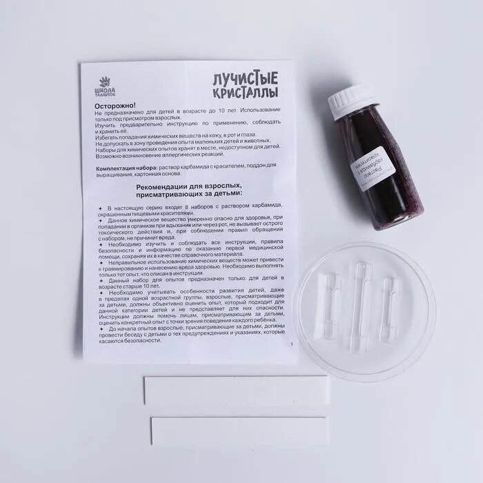 | Комплектация | карбамид с красителем, поддон для выращивания кристаллов. картонная основа инструкция |