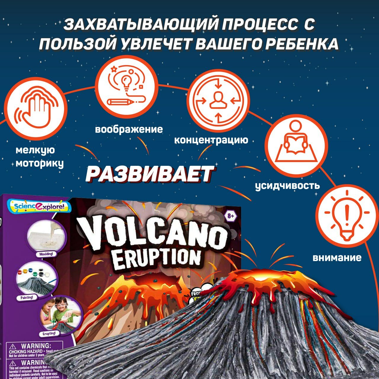 Набор для опытов и экспериментов Извержение вулкана информация:
