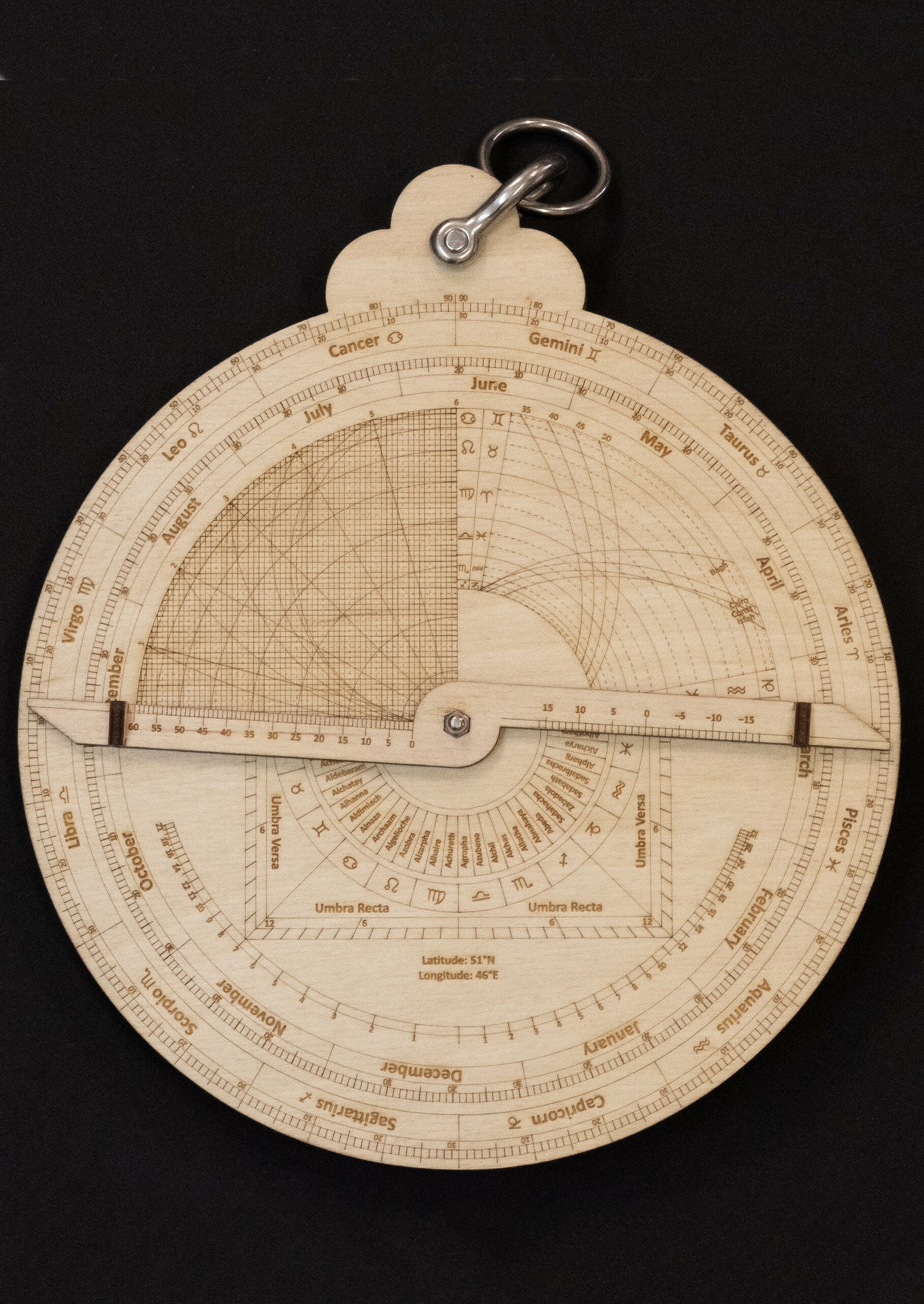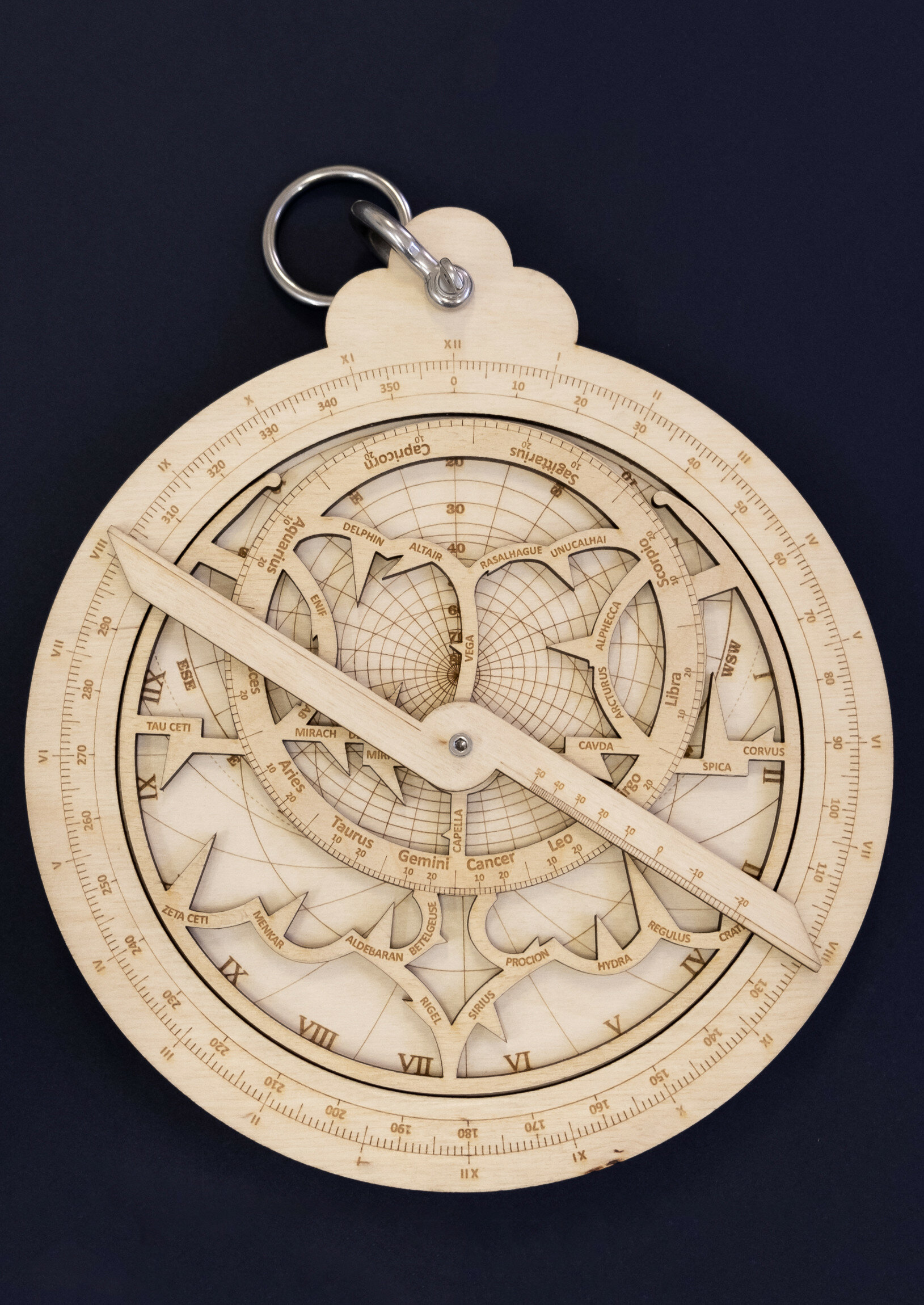 Планисферная астролябия 50 градусов С.Ш. с деревянным рете информация: