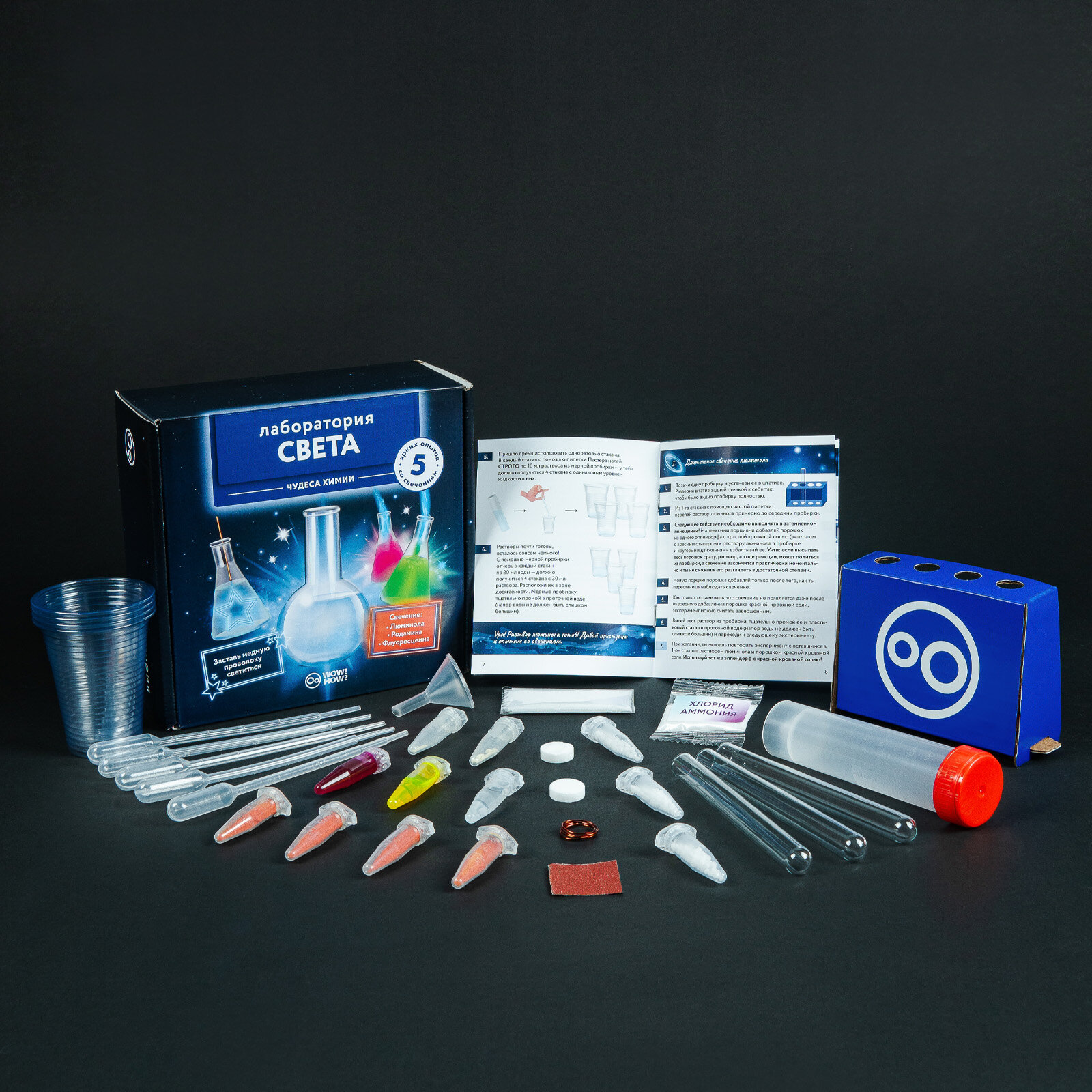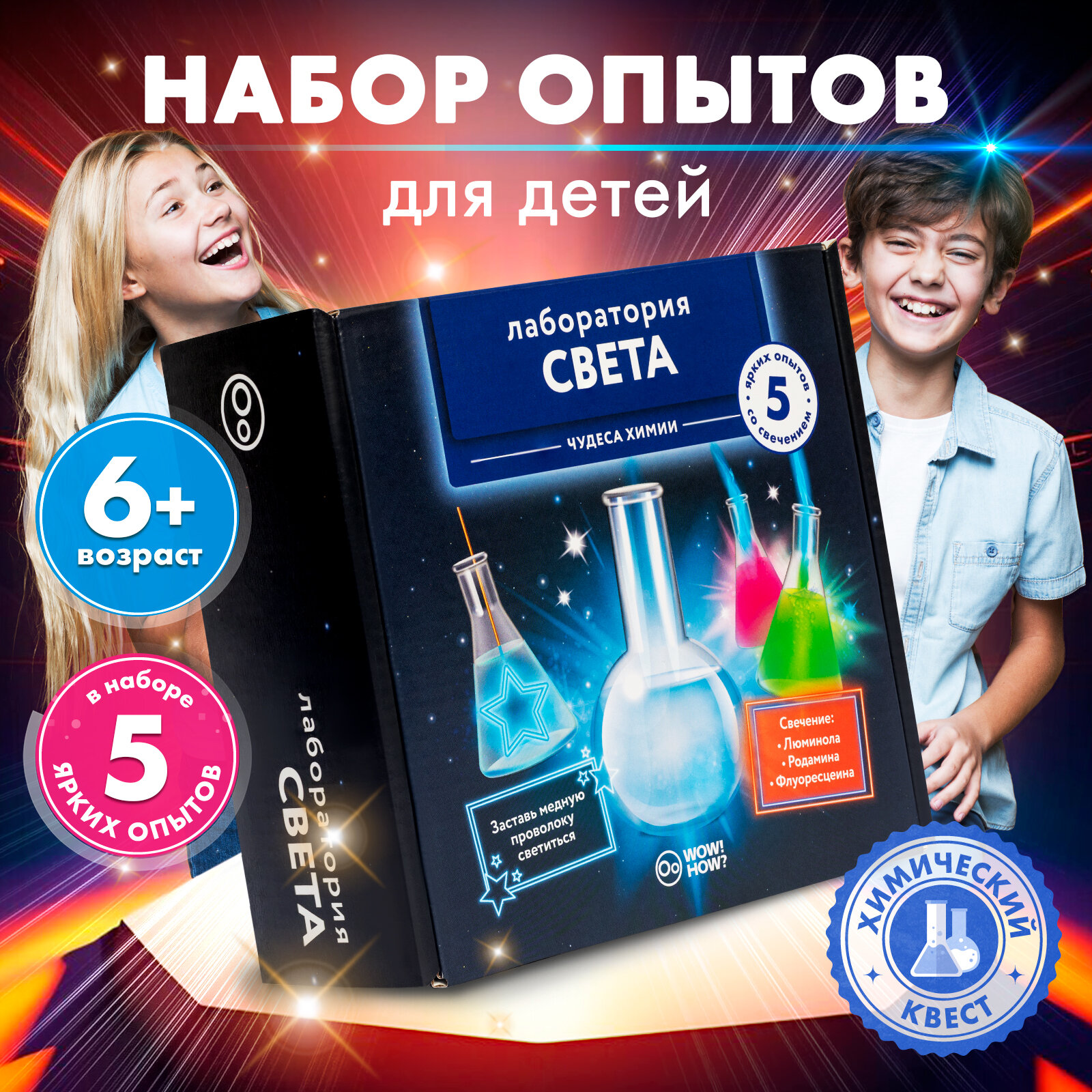 Набор для опытов и химических экспериментов для детей WOW! HOW? Лаборатория света. Подарок для девочки, мальчика от 8 лет. Юный химик информация: