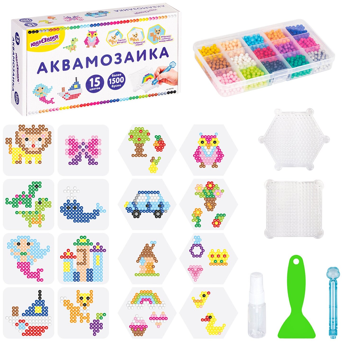 Аквамозаика, 15 цветов, 1500 бусин, в колорбоксе, юнландия, 663778
