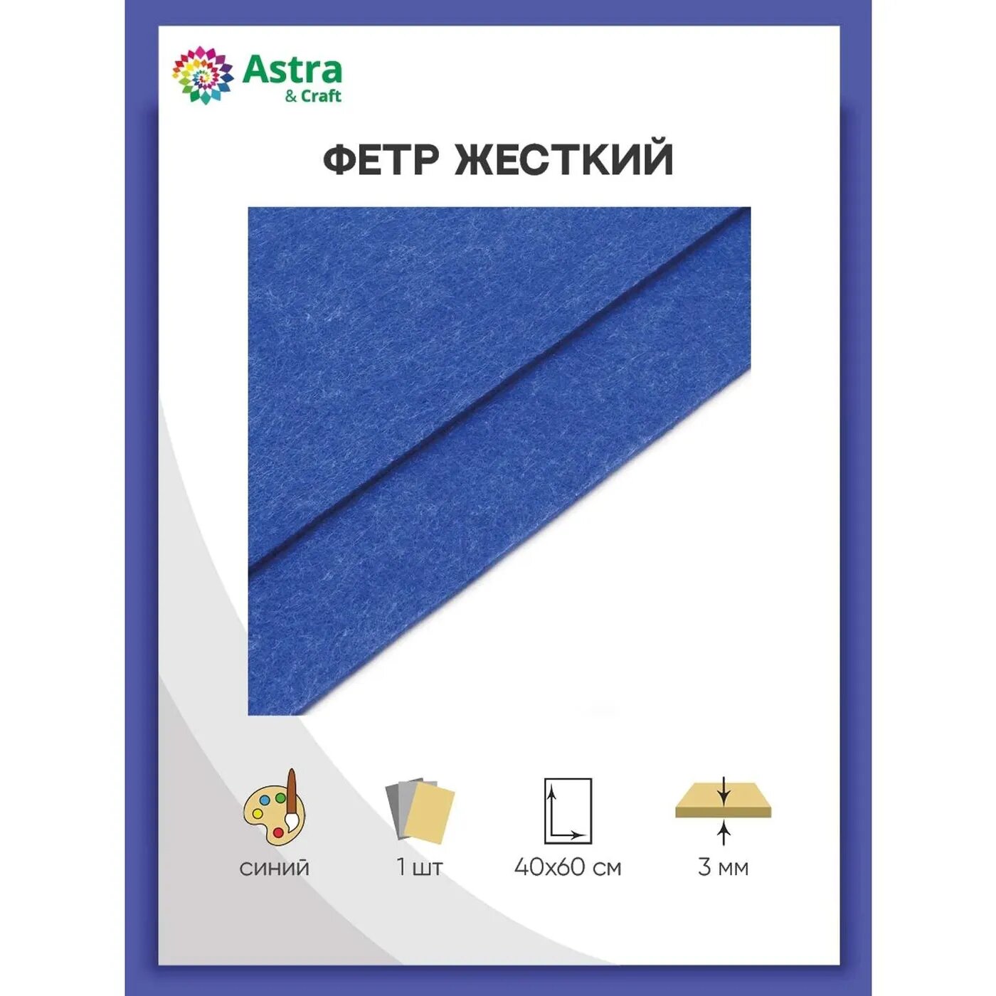 Фетр Astra&Craft Листовой, жесткий, 3 мм, 40х60 см, цвет AF884, синий информация: