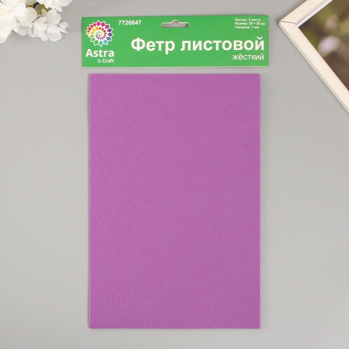 10 цен на Набор жесткого фетра "Астра" (3 шт) сиреневый, 1 мм, 160 гр, 20х30 см