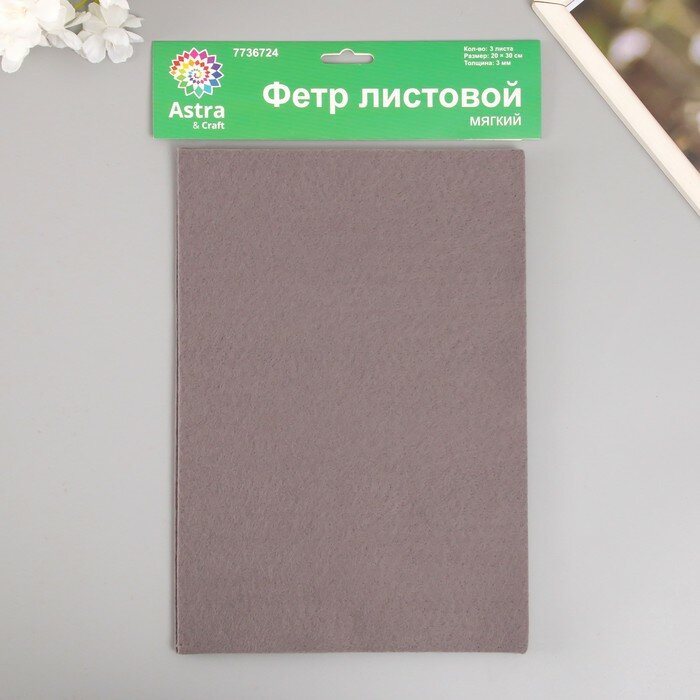Набор мягкого фетра "Астра" (3 шт) серый, 3 мм, 400 гр. 20х30 см информация: