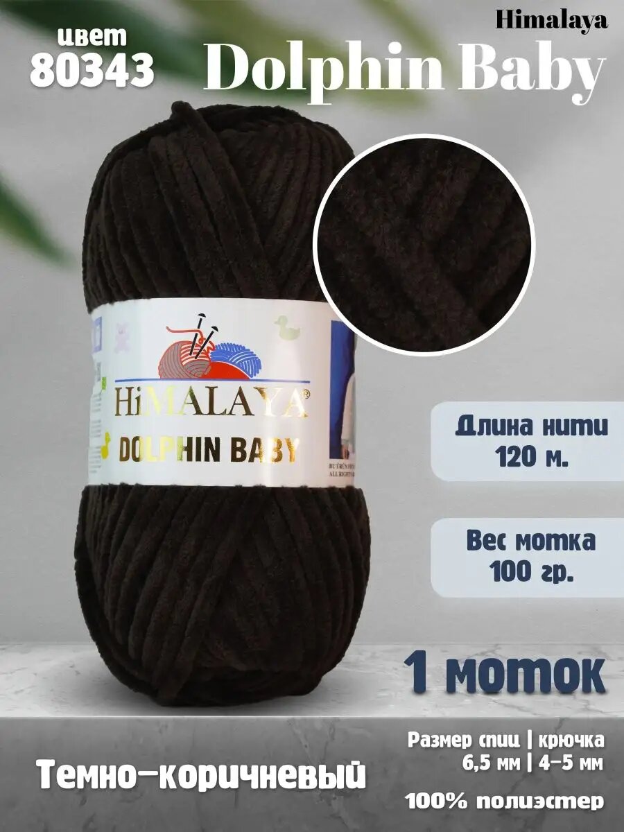 Пряжа Himalaya Dolphin baby темно-коричневый (80343), 100%полиэстер, 120м, 100г, 2шт