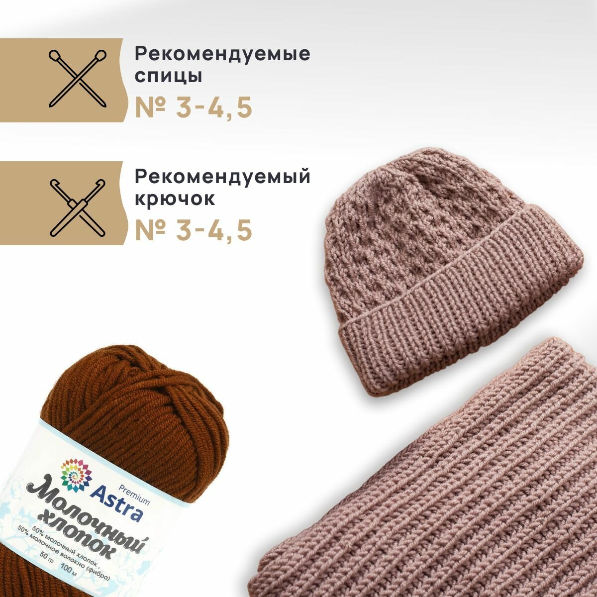 Отзывы на Пряжа для вязания Astra Premium 'Молочный хлопок' (Milk Cotton) 50гр 100м (+/-5%) (50% хлопок, 50% молочный акрил) (56 молочный шоколад), 3 мотка