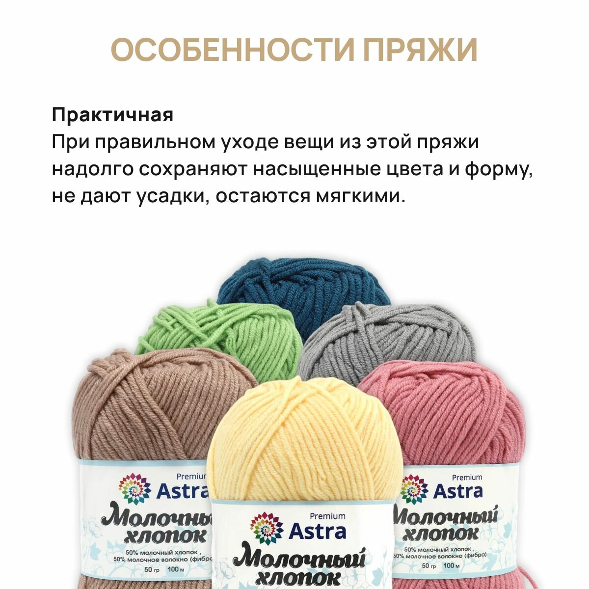 Пряжа Astra Premium 'Молочный хлопок' (Milk Cotton), 50 г, 100 м (+/-5%) (50% хлопок, 50% молочный акрил), 3 мотка
