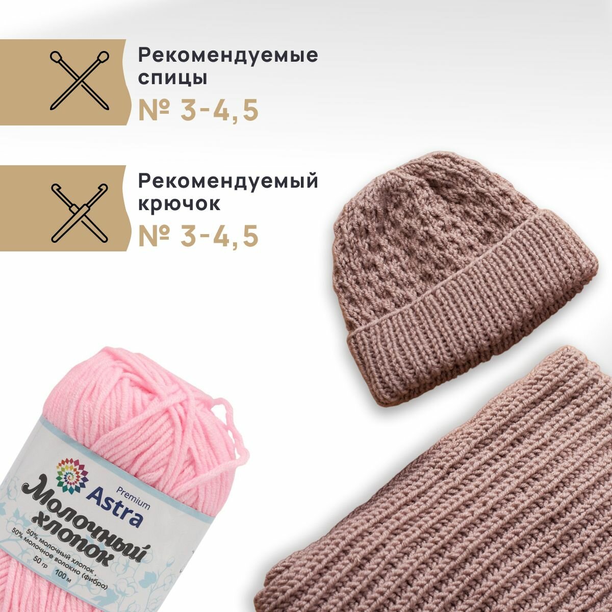 Пряжа для вязания Astra Premium 'Молочный хлопок' 50г, 100м (хлопок, молочный акрил) (91 пыльная роза), 3 мотка 438 ₽