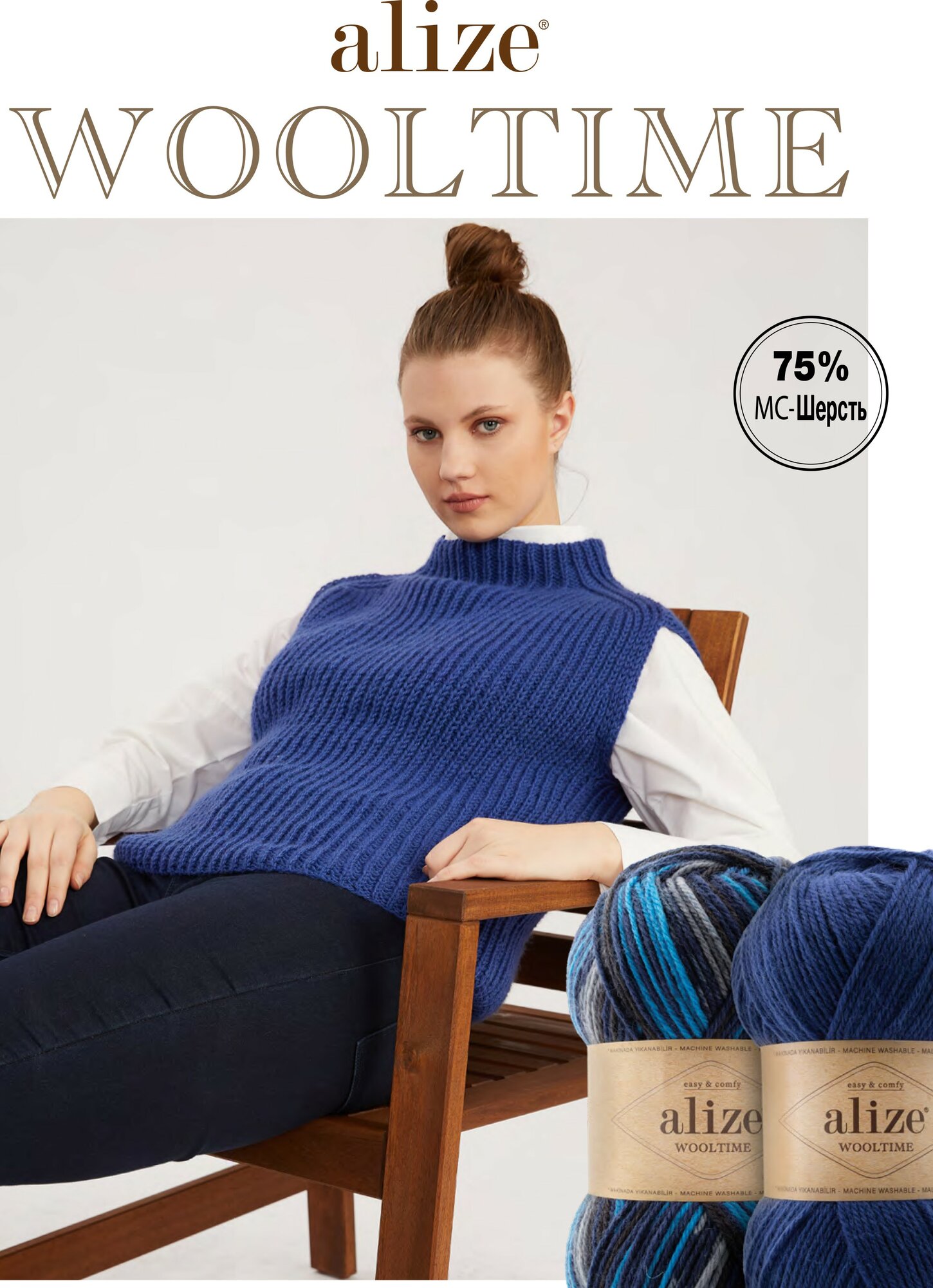 Пряжа Alize Wooltime Ализе ВулТайм, 55 75% шерсть, 25% полиамид, 100 г, 200 м, 1 моток.