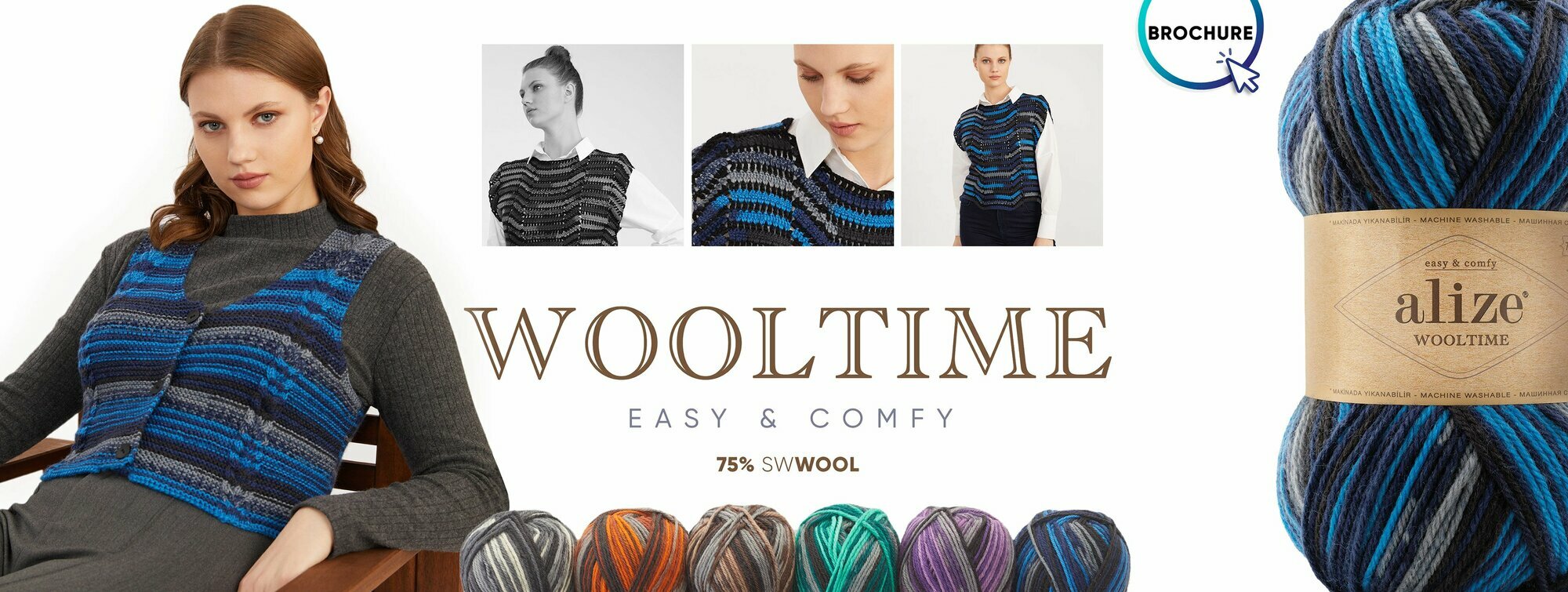 Пряжа Wooltime, Alize, бел/беж/корич - 11023, 75% SW шерсть, 25% полиамид, 5 мотков, 100 г., 200 м. 2 071 ₽