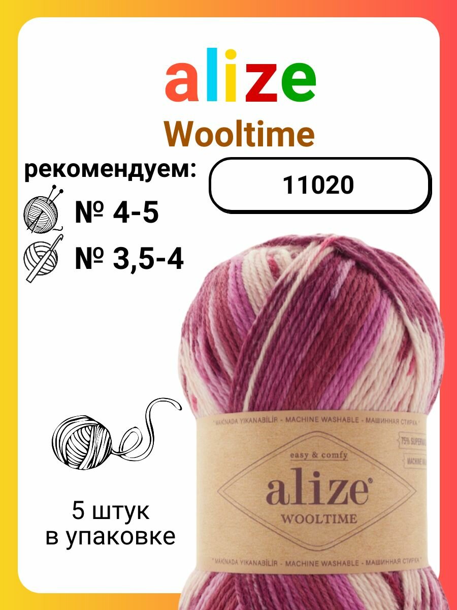 Пряжа Alize Wooltime 11020, 100 г, 200 м, 5 штук информация: