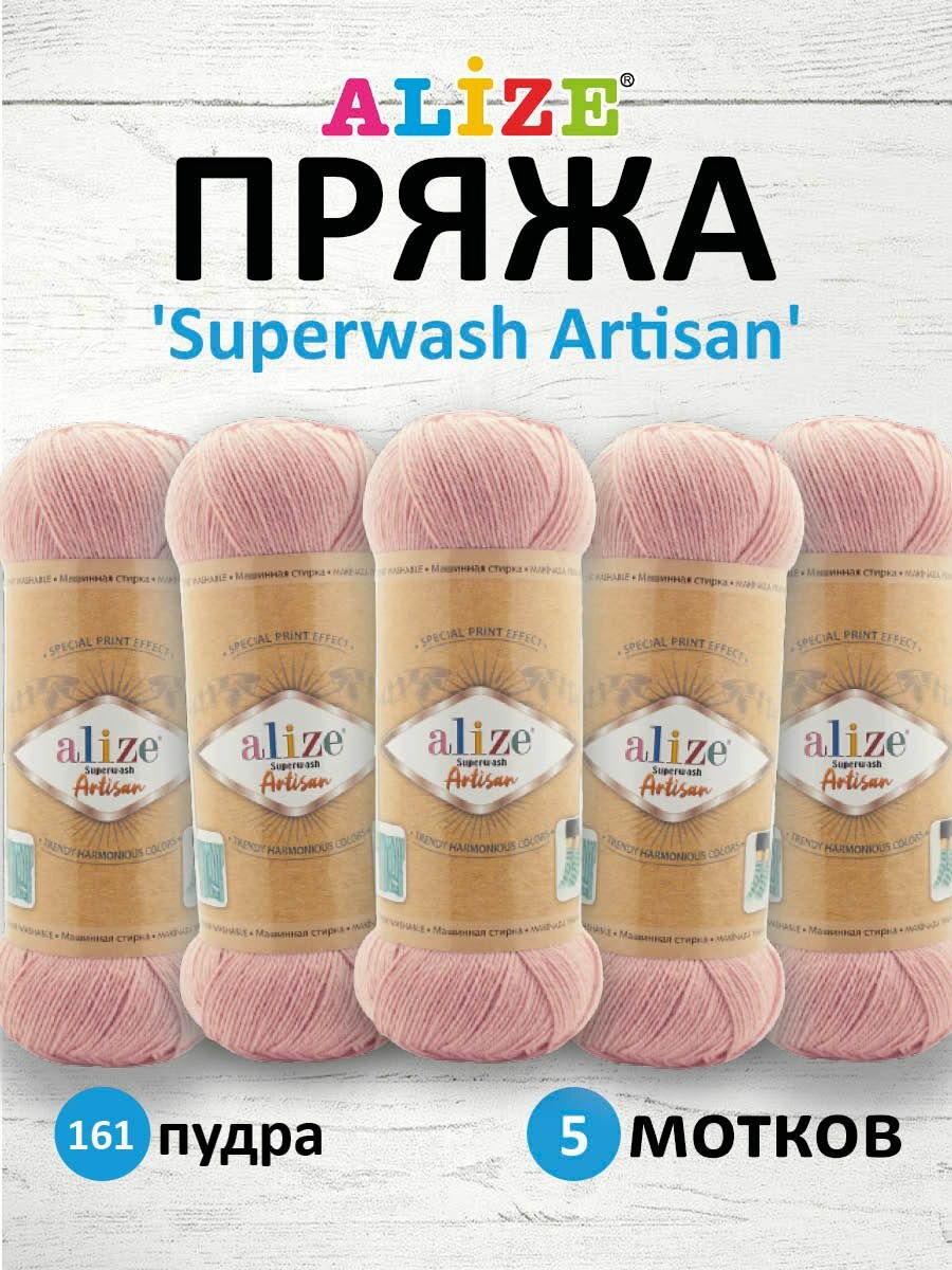 10 цен на Пряжа для вязания ALIZE 'Superwash Artisan', 100г, 420м (75% SW шерсть, 25% полиамид) (161 пудра), 5 мотков
