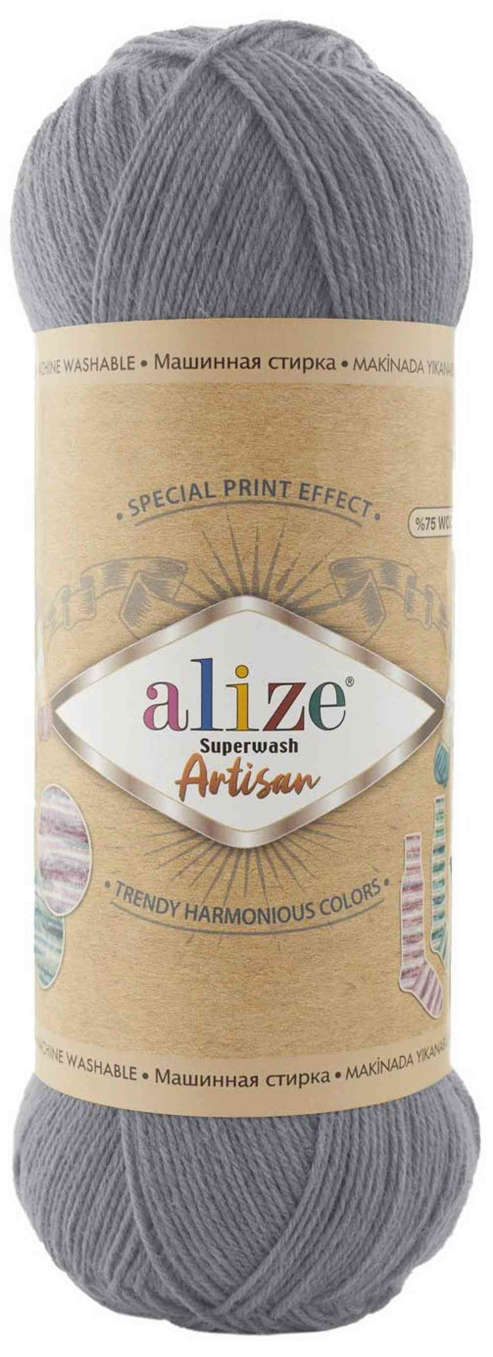 Пряжа Alize Superwash Artisan (Ализе Супервош Артизан) - 1 моток, Серый (836), 75% шерсть супервош, 25% полиамид, 420м/100г