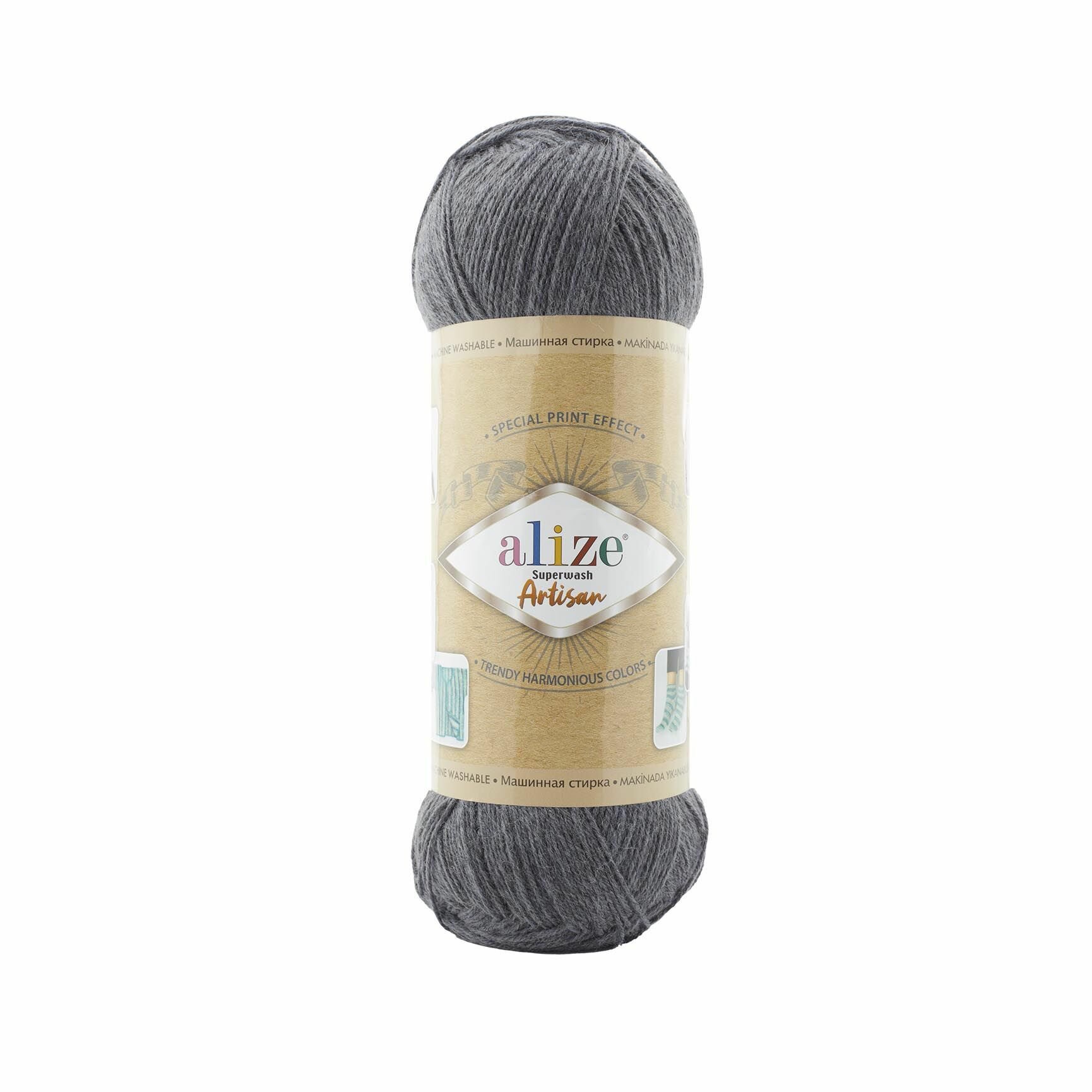 Пряжа Alize Superwash Artisan (Ализе Супервош Артизан) - 1 моток, Серый (836), 75% шерсть супервош, 25% полиамид, 420м/100г