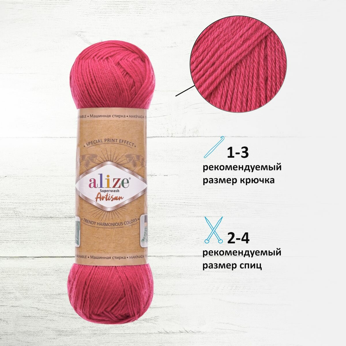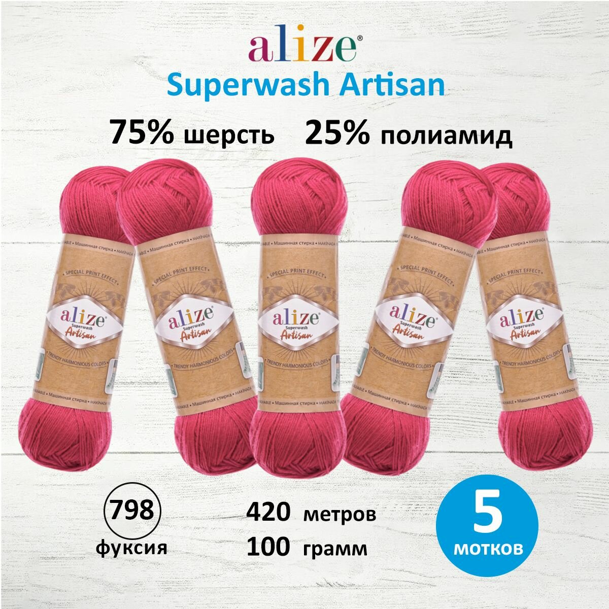10 цен на Пряжа Alize Superwash Artisan фуксия (798), 75%шерсть/25%полиамид, 420м, 100г, 5шт