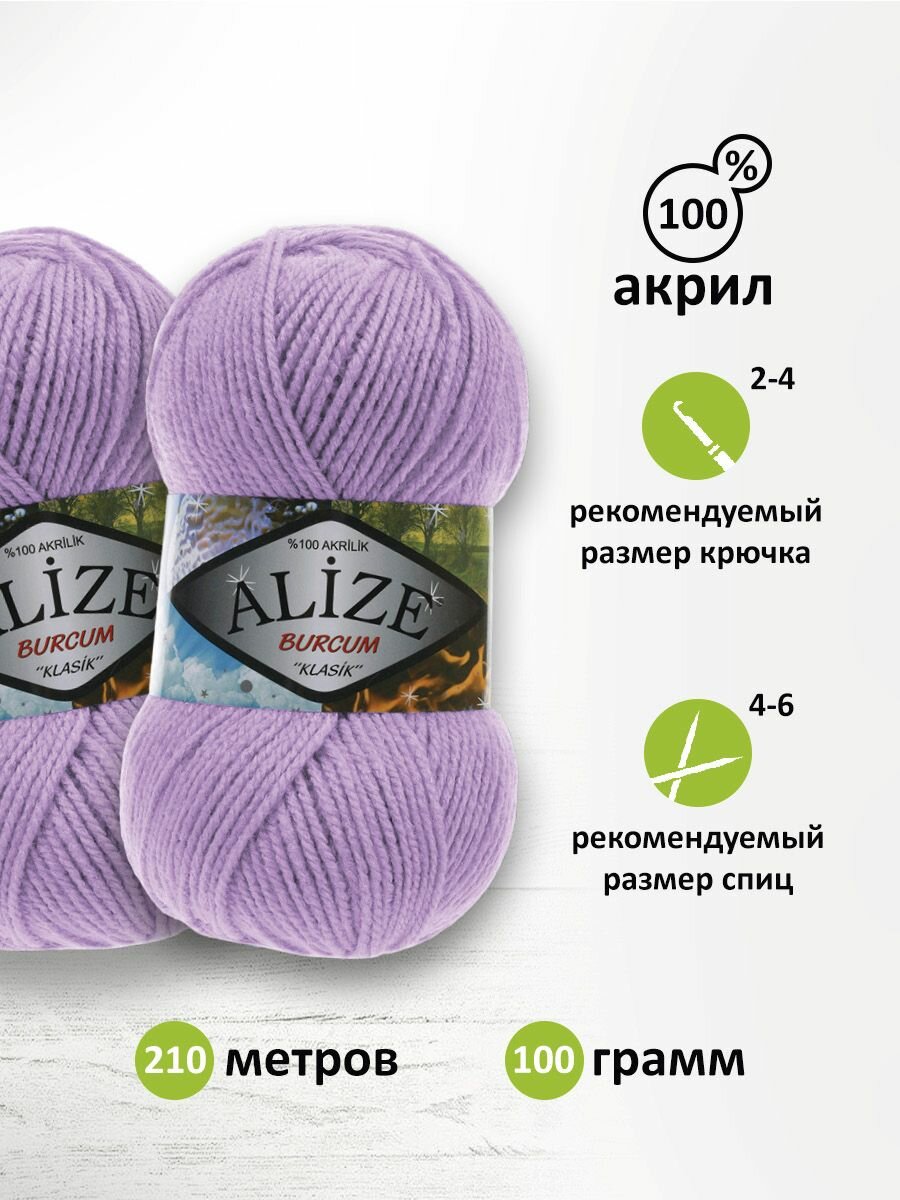 Пряжа ALIZE "Burcum Klasik", 100 г, 210 м, 100% акрил, цвет 247 сиреневый, 5 мотков 1 132 ₽