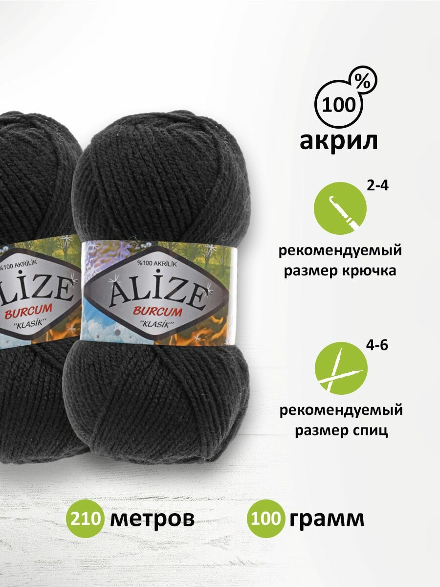 Пряжа для вязания Alize Burcum Klasik 60 черный, 100 г, 210 м, 5 штук информация: