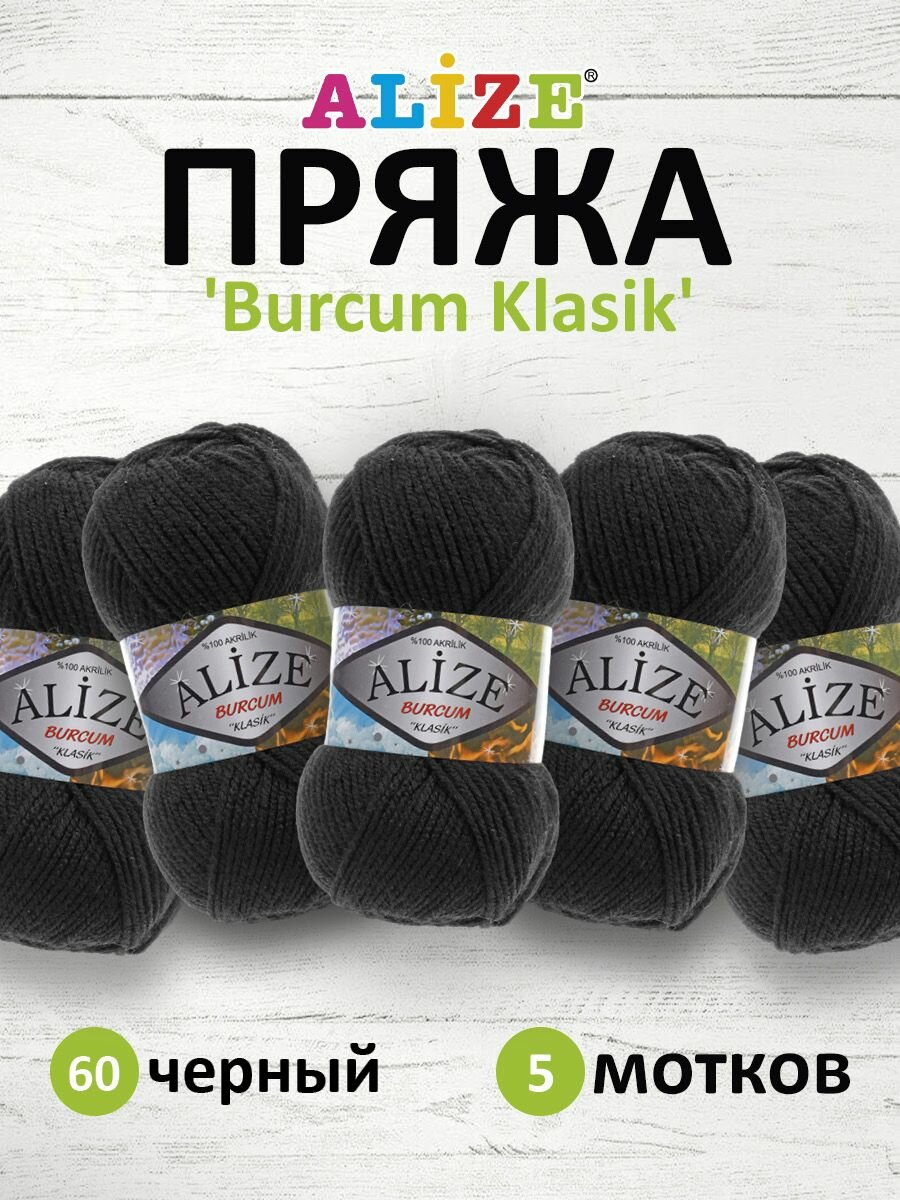 10 цен на Пряжа для вязания Alize Burcum Klasik 60 черный, 100 г, 210 м, 5 штук