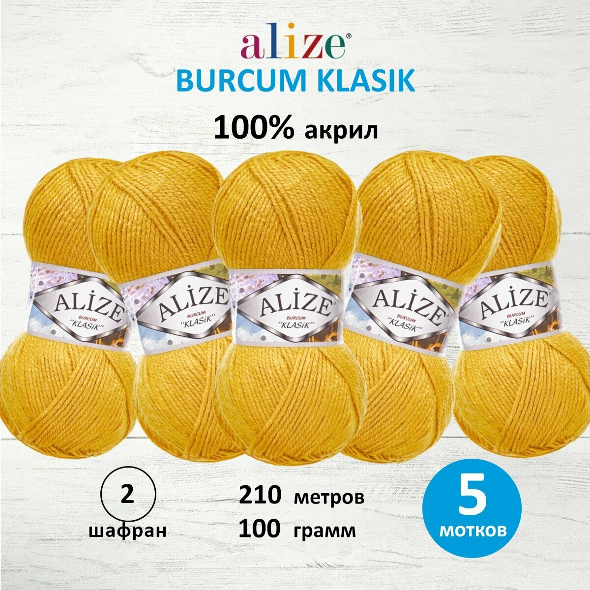Пряжа для вязания ALIZE 'Burcum Klasik', 100г, 210м (100% Aкрил) (2 шафран), 5 мотков информация: